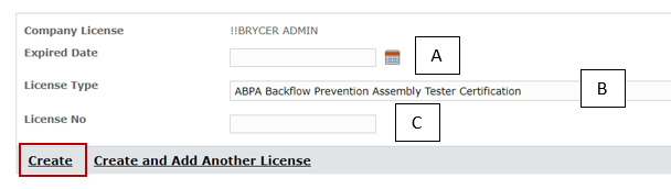 Step 5: Click "Create" to save the license to TCE. If you wish to continue on and add another license you may select "Create and Add Another License."