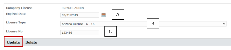 A: Change the expiration date to the new updated date. As you can see here, this license expired on 03/31/2019. The new expiration date should be dated for the current year or later.